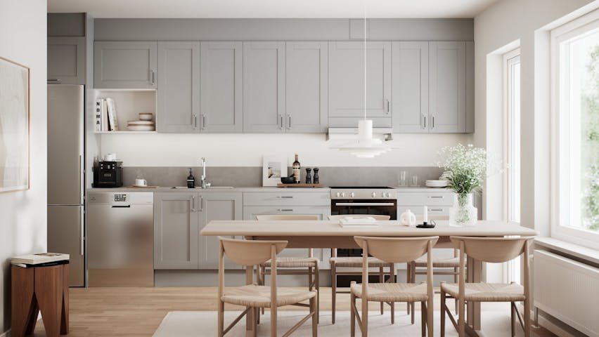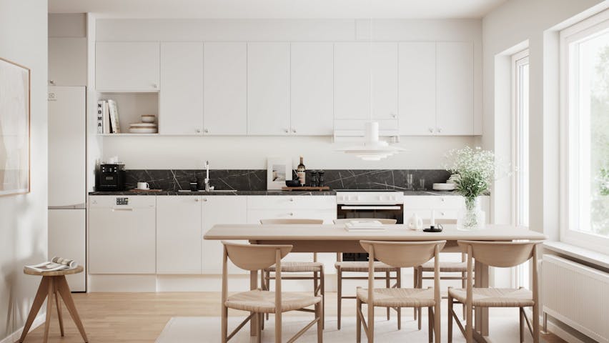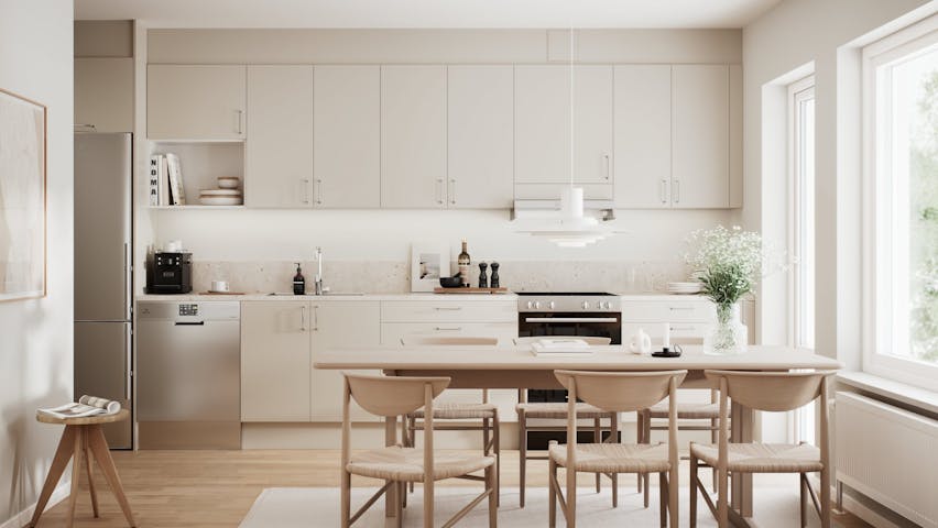 Smarta planlösningar med gott om ljusinsläpp skapar känslan av rymd. I en etta på 31 kvadrat finns ändå plats för tre garderober, förråd och en härlig balkong. Barnfamiljens femma har en semiöppen planlösning mellan kök och vardagsrum, tre sovrum med gott om förvaring och dessutom ett arbetsrum för de som arbetar hemifrån.