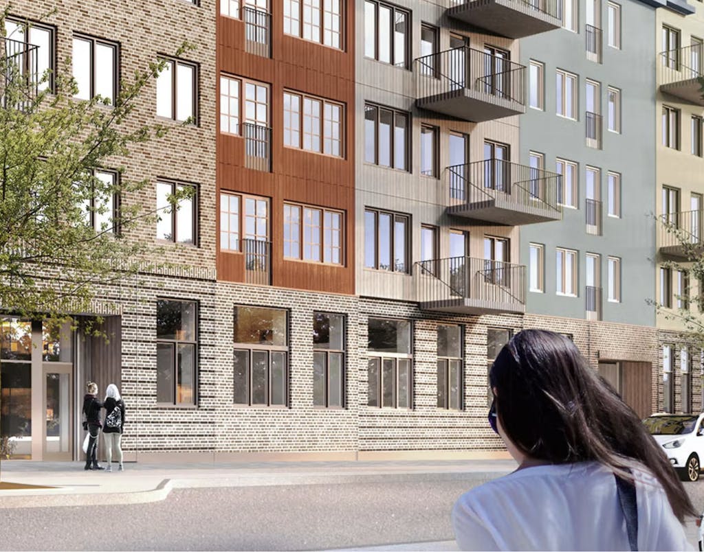 Utöver ett hållbart femvåningshus med stomme helt i trä – där merparten av lägenheterna utformats med den växande familjen i åtanke – har Genova även etablerat ett generationskoncept. Som rymmer äldreboende och förskola i en och samma byggnad.