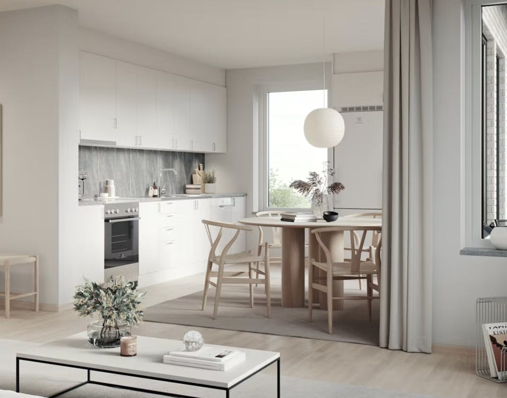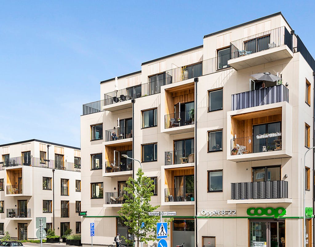 I gränslandet mellan stad och villaområde fylldes tre vackra hus med exklusiva materialval, väl tilltagna fönster och tidlösa designelement. För att ytterligare förstärka områdets närservice uppfördes ett gym och en Coop-butik som del av projektet.