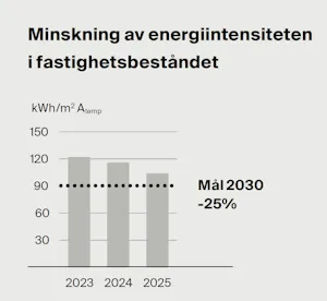 - Minska energiintensiteten med 25 % till år 2030 jämfört med basår 2023.