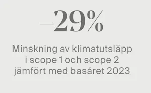 - Minska klimatutsläpp i Scope 1 och 2 med 42 % till 2030 jämfört med basår 2023 samt mäta och minska Scope 3-utsläpp. Målet är validerat enligt SBTi.*