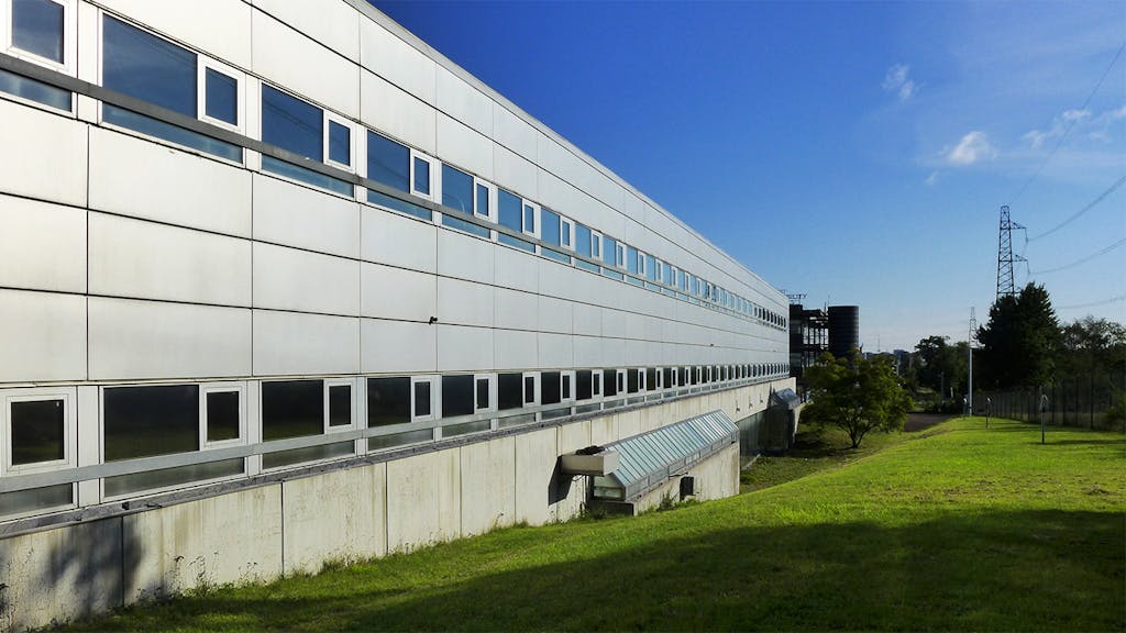 Byggnaden ritades av Tengbomgruppen för Canon 1979, med en tillbyggnad som tillkom 1982. Ursprungligen inrymde anläggningen kontor, lager och verkstad.