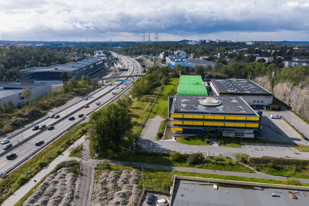 Byggnaden är placerat närmst motorvägen vilket erbjuder unik möjlighet för exponering och marknadsföring mot E4/E20.