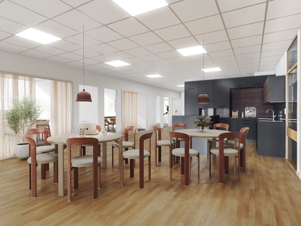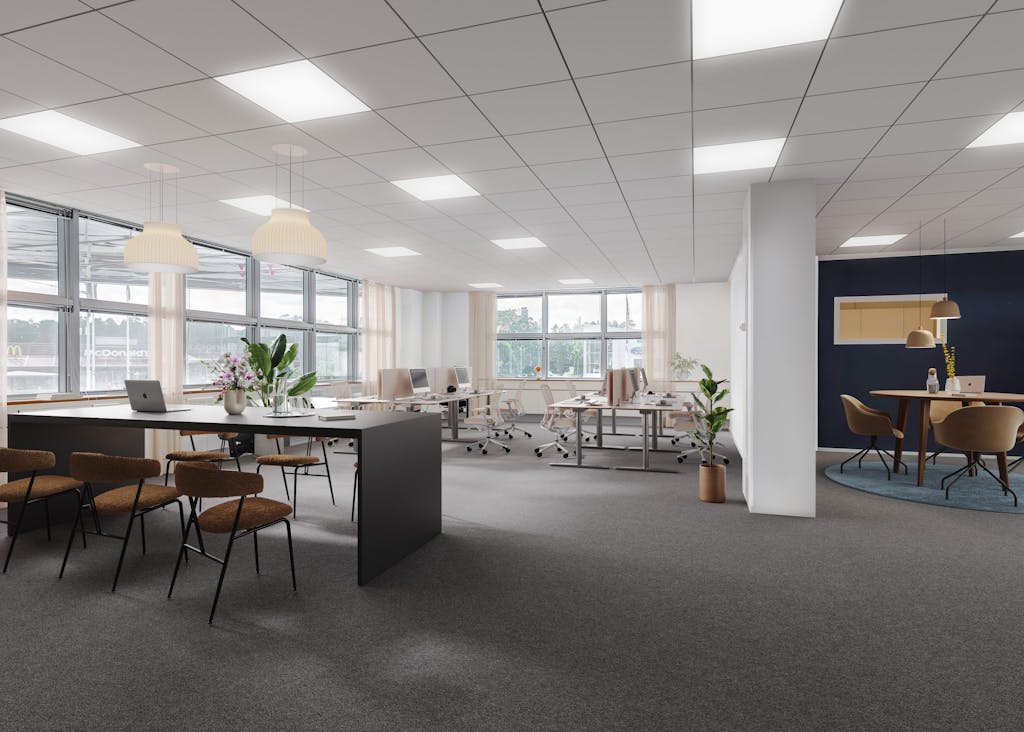 Lokalen nås via hiss direkt upp till kontoret och består av 345kvm. Genomgående fönster från söder, väst och norrläge. Genomgående ljusa ytor med vitmålade väggar. Planlösningen erbjuder så väl mindre kontorsrum, som konferensrum och gemensamma ytor. De större rummen har plats för större grupper och fungerar utmärkt som klassrum/undervisning. Kontorsrummen har glaspartier mot gemensamma ytor och korridor.