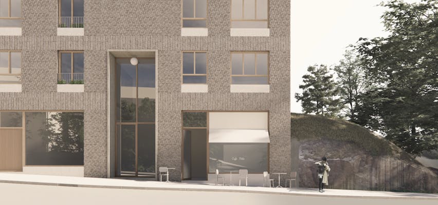 I vårt utvecklingsförslag har form och gestaltning skapats med utgångspunkt i att lyfta och förstärka platsens naturliga förutsättningar och samtidigt bidra till att skapa ett boende av hög kvalitet, som stödjer den övergripande stadsutvecklingen på Kvarnholmen.
