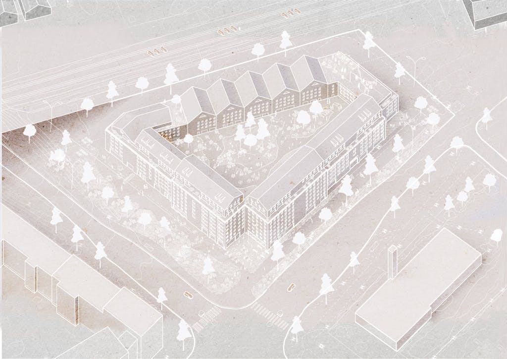 En ny bebyggelse mot Gamla Uppsalavägen medverkar till att forma ett tydligt och sammanhållet gaturum och även mot Vattholmavägen skapar entréer och levande bottenvåningar aktivitet till gatan. Bebyggelsen hålls ihop mot spåren och ger möjligheten till en tyst grön bostadsgård med ytor för såväl rekreation som lek. Siktlinjerna mot Domkyrkan och utblickar från lägenheterna omhändertas för att ge vid utsikt och generösa ljusinsläpp.